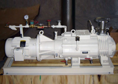 The UDS series of pumps are 100% oil-less rotary screw vacuum pumps. They are designed to operate on a continuous basis at any point from atmospheric pressure to a vacuum level of 0.010 mm Hg (29.9″Hg +). The oil-less pumps are ideal for applications where oil or water sealed pumps are objectionable. The pump comes complete with inlet check valve, gas purge connections & Kalrez mechanical seals. .